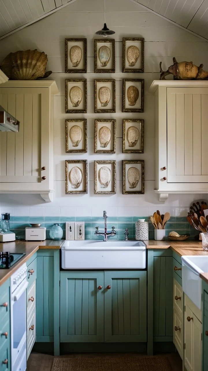 In a rustic coastal kitchen, these decorative pieces can serve as conversation starters. They remind us of sunny beach days and the calming sounds of the waves. Incorporating seashells into your decor can transform your space into a serene retreat.