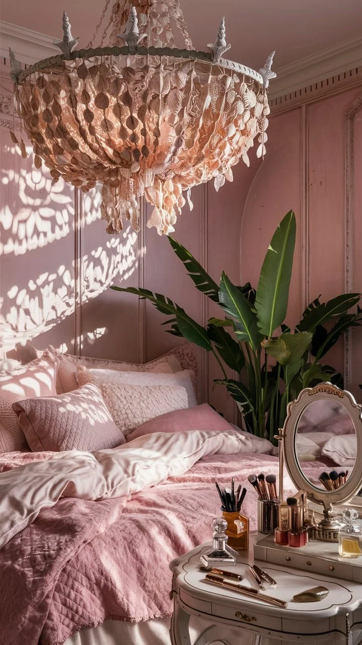 Imagine waking up to the soft whisper of ocean waves, enveloped in a room that marries the tranquility of the coast with the warmth of pink hues.