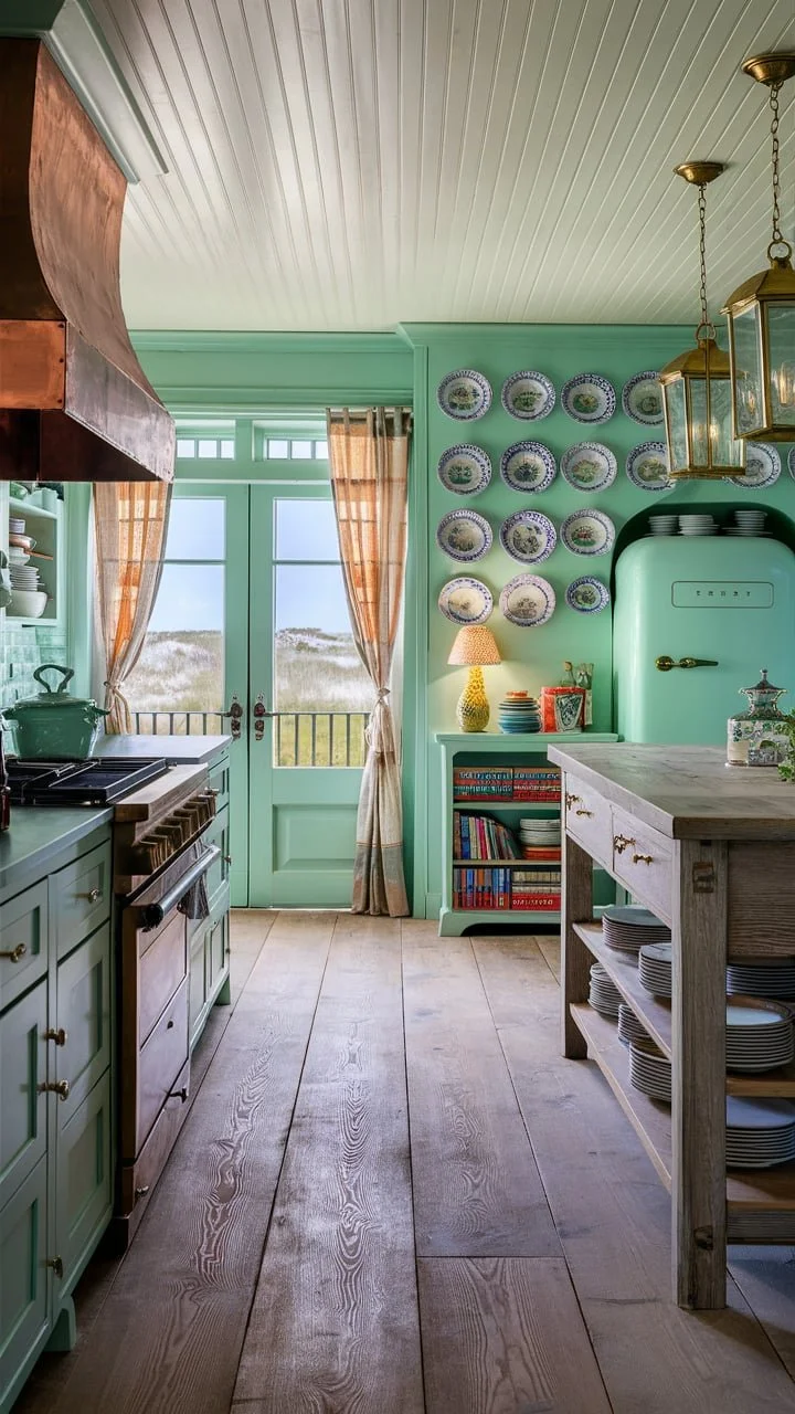Let's chat about the secret ingredient to nailing that perfect cottage kitchen vibe – it's all about mixing and matching your greens like you're creating the world's coziest salad! Think of your kitchen as a garden where different shades of green play together perfectly.