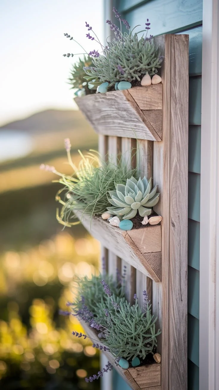 A vertical garden is the perfect solution when ground space is limited, and adding coastal elements creates a unique beachside charm that will make your cottage stand out.