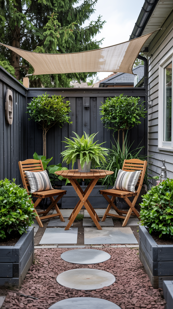 Add appropriately-sized seating—a small bistro set or bench works perfectly