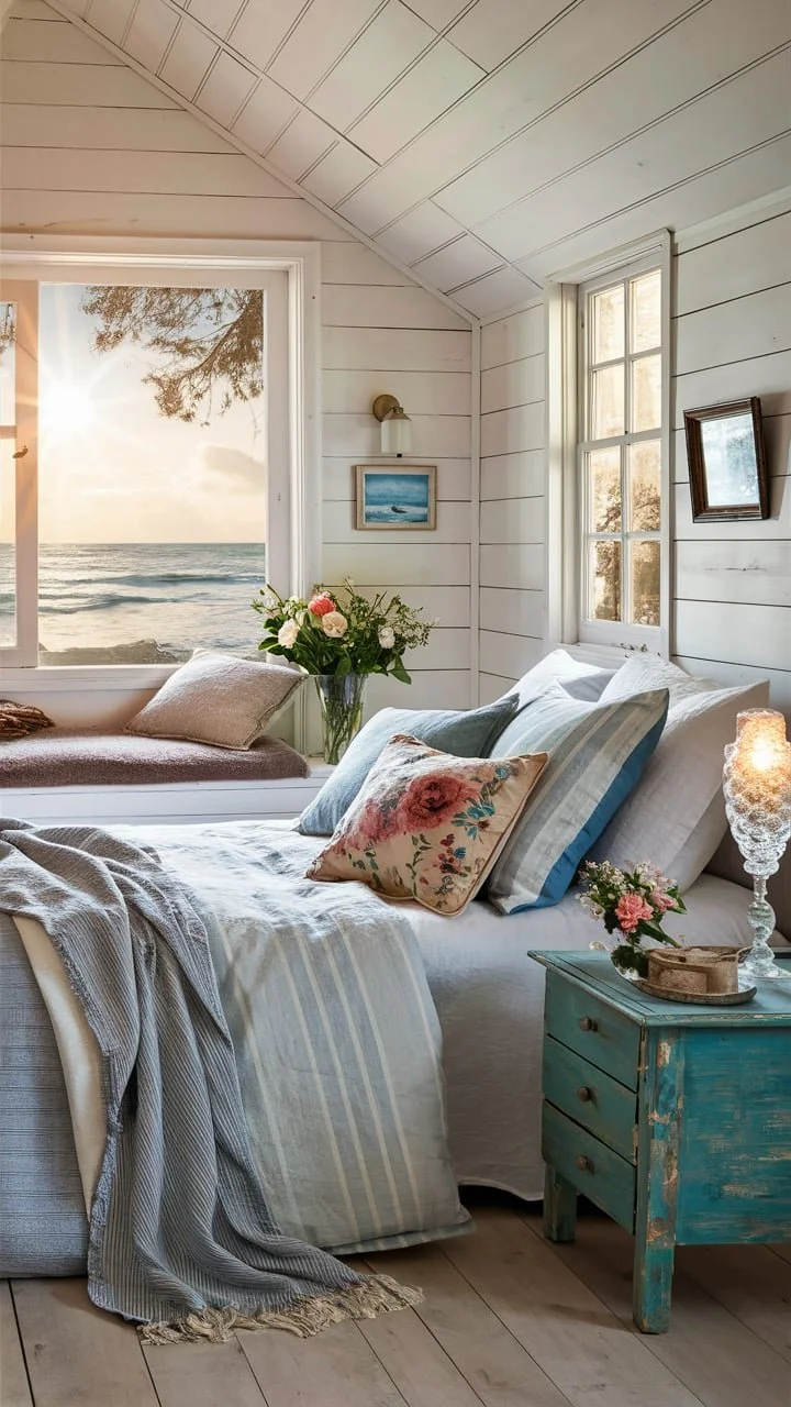 And layering textures? That’s where the magic really happens. Crisp white sheets, a soft quilt, a cozy knit throw, and a few patterned pillows can instantly make your bed feel like a seaside retreat.