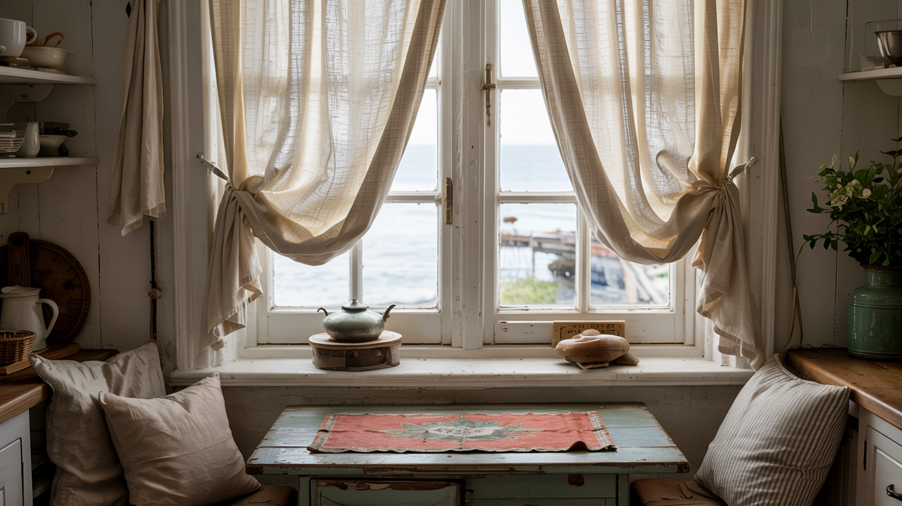 Choose lightweight linen curtains instead of heavy drapes - same cottage texture, more coastal airflow