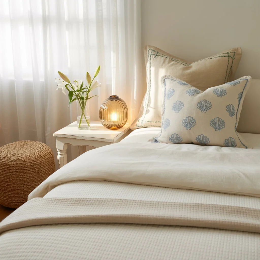 Over the years, I've learned how to bring that tranquil, ocean-side feeling into my beach cottage home in a way that feels elevated, peaceful, and personal. If you're wondering how to use beach-inspired textiles without turning your space into a tourist shop, let me share everything I've learned.