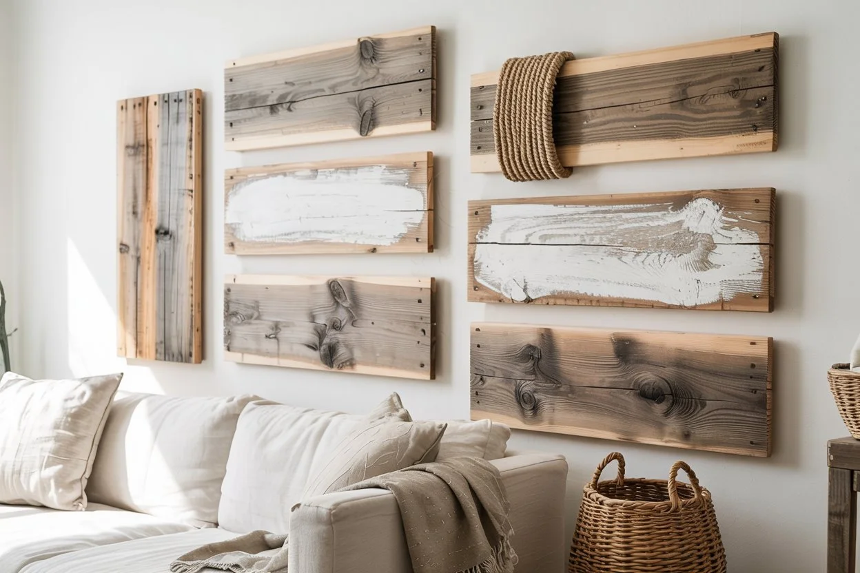 Once your boards are dry, play with their arrangement before hanging them. For a uniform look, align them in a straight line or grid. For a more relaxed, eclectic feel, stagger them to give the illusion of casually hung artwork, much like you'd find in a coastal cottage.
