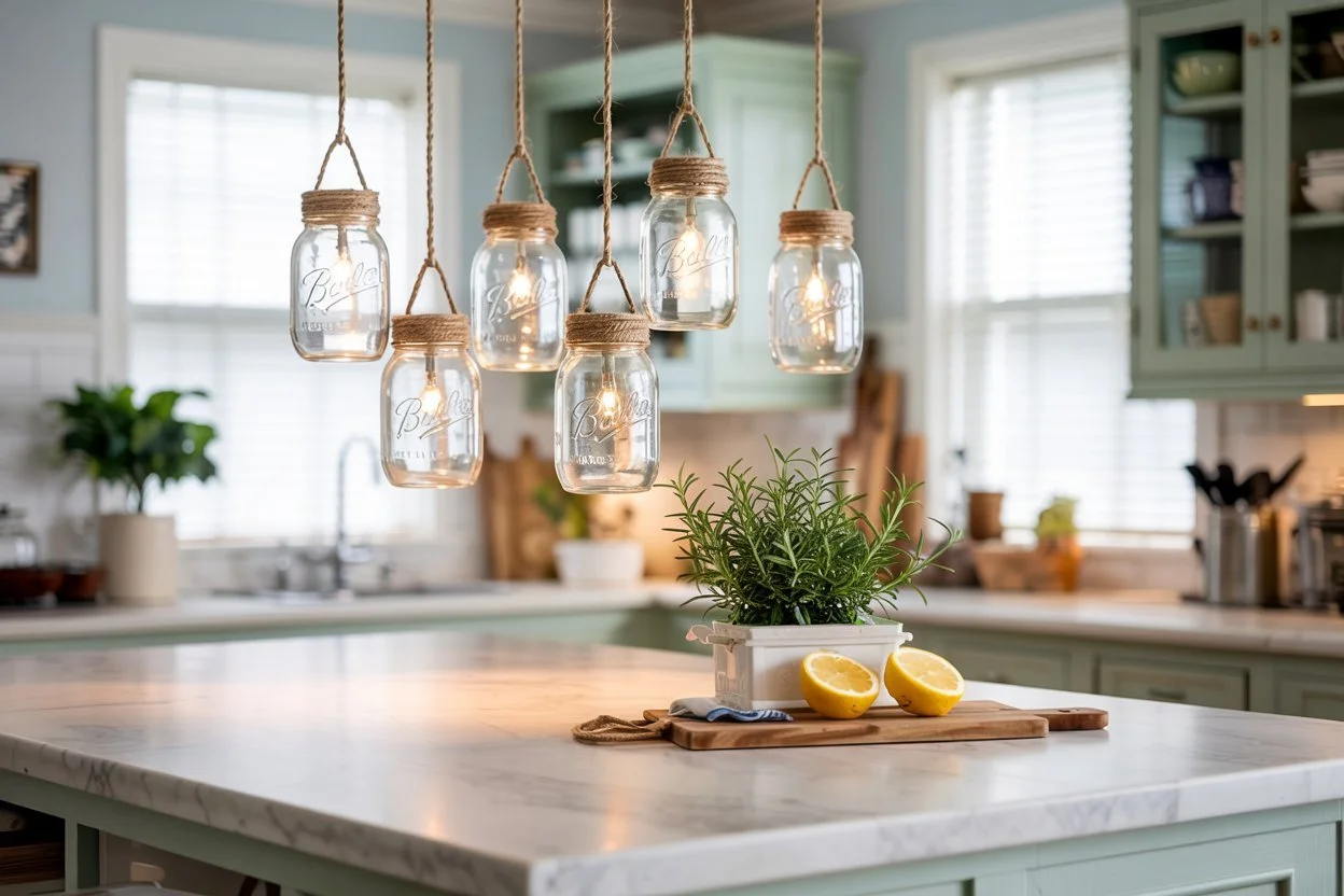 Sometimes you want the look without the weekend project. Search for "coastal pendant lighting" or "mason jar kitchen lights" at: