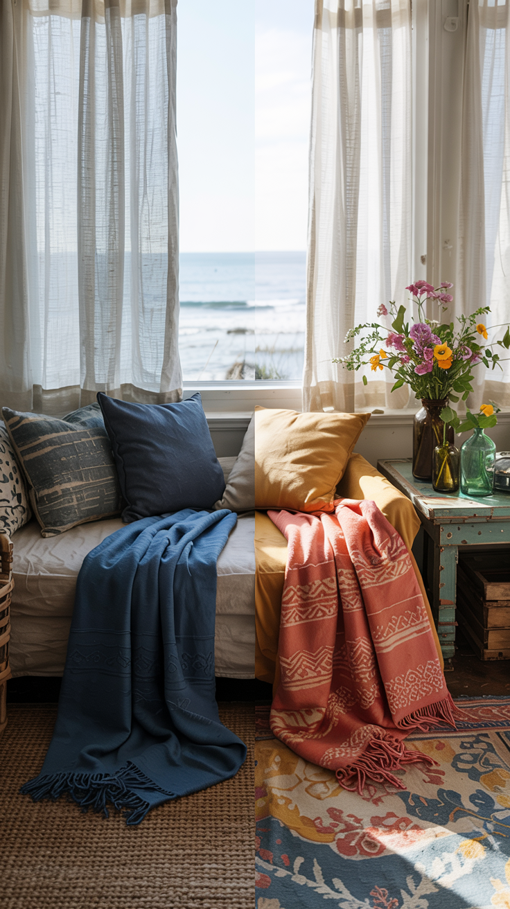 In a small space, less is always more. A good rule of thumb is to work with no more than four color families: one neutral (walls and large furniture), one signature color (your coastal blues, for example), and two accent colors that you rotate seasonally. More than that and the space starts to feel cluttered rather than curated.